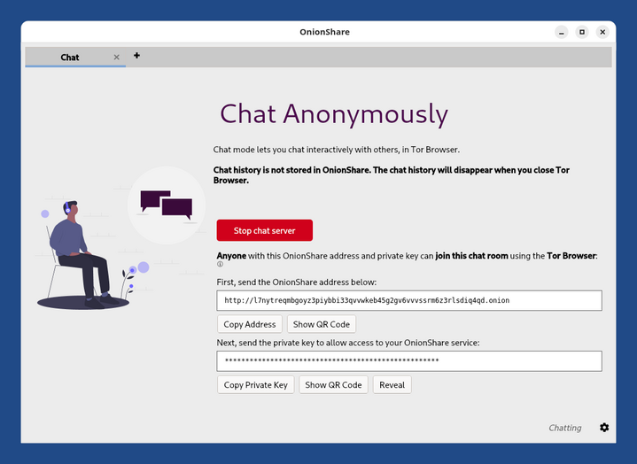 People with the onion address can enter this chat room from their Tor Browser and chat with you or other people.